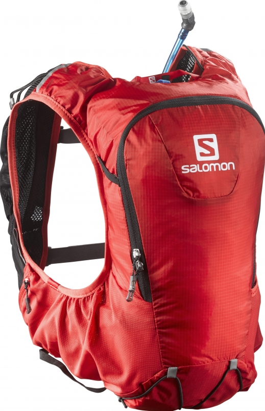 Salomon 的 Skin Pro 10 背心可調式水袋背包,309 g 的重量除了讓跑者「輕鬆」跑外,可調節的背心式背帶,讓跑者背負水袋時,感覺是「穿」在身上而非「背」在背上,彈性胸口帶不阻礙呼吸動作,還可因應不同身形調校至最舒適狀態,身體即使上下左右晃動,它照樣「隨時跟上」,還有還有,雙層高透氣網布背墊網孔,使汗水更快揮發,讓你恣意揮灑汗水無負擔。