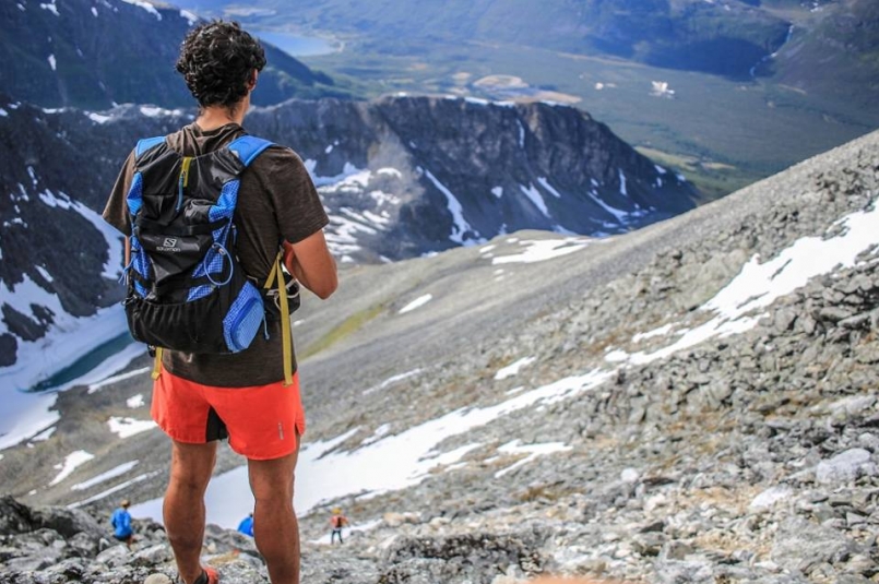建議穿長袖或短袖的排汗衣,避免水袋背包摩擦肌膚(圖片來源:Salomon)