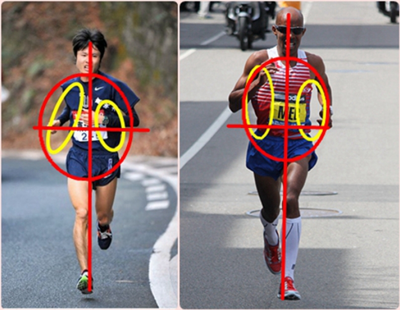 而幾乎相同的是,跑者們的右手手擺都比較靠高處,而左手則放稍低一點。對此有不同的論點,一是田徑選手出身習慣跑跑道造成習慣;二是右撇子的問題,右擺手軌跡大的效果會間接影響左腳往前踏的效率,後者的說法較為精準,而這是很無意識的動作。