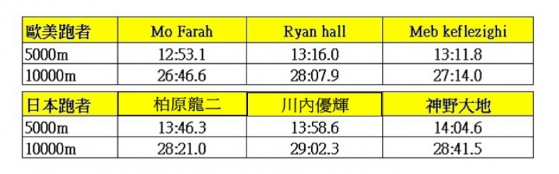 歐美與日本跑者 5000m、10000m 成績比對(圖片來源:Don 1 Don)