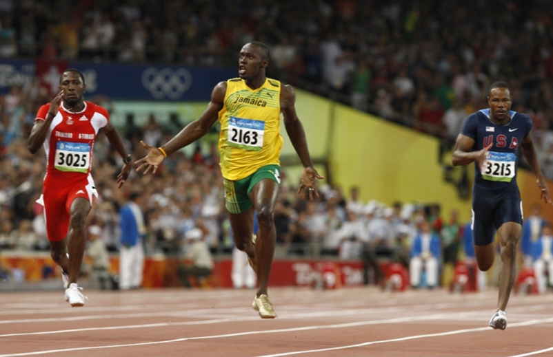牙買加籍的柏特(Usain St. Leo Bolt)在2008年北京奧運一舉打破三項短跑世界紀錄,目前也是100公尺、200公尺和400公尺接力賽的紀錄保持人。(圖片來源:路透社)