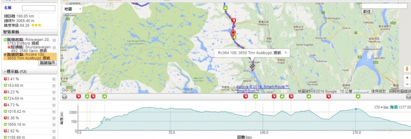 - 單車 180 km,除了總爬升三千多公尺之外,最困難的應該是低溫和逆風了。2014 年 cycle time 第一名的選手 Even Chiodera 在最後 30 km 的”下坡”路段的騎乘時間約 1 小時 02 分,可見這路段逆風的強大。