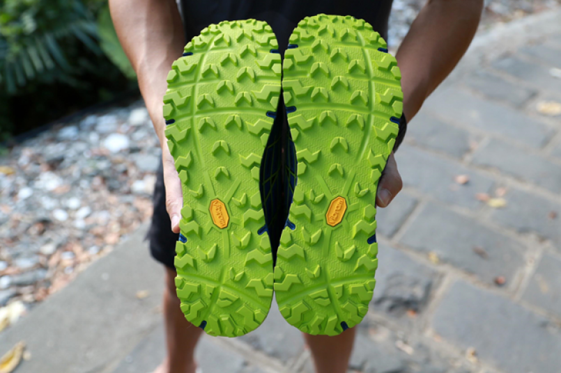Vibram 大底在沙質地、碎石路、泥濘地、草地和濕滑的岩石上皆表現出優秀的抓地力,於平時練跑或比賽中,都可將自己很安心地託付給它。