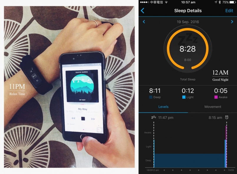 從入眠到醒來,全天 24hr 都有 vívosmart HR+ 的安心陪伴(圖片來源:紀薇)