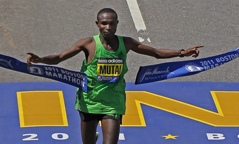2011 年 Geoffrey Mutai 於波士頓馬拉松終點衝線照(圖片來源:路透社)