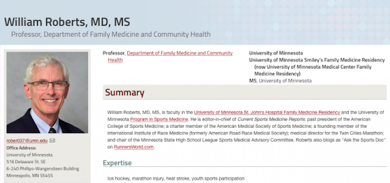 這傢伙很有趣,專長是「馬拉松傷害」、「青少年運動」。(圖片來源:William Roberts)