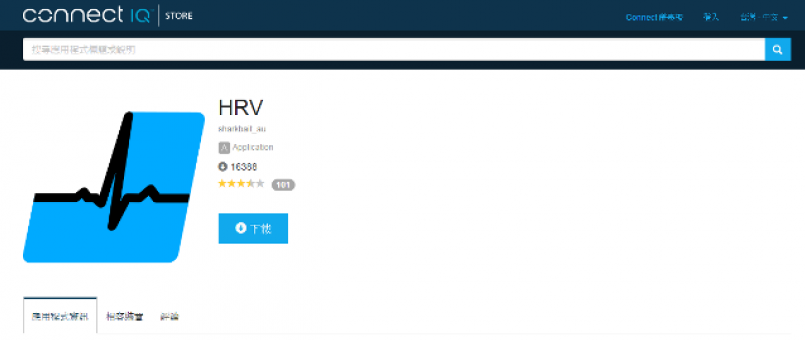 HRV 心率變異度的應用程式,可以做為訓練時身體狀況的參考(圖片來源:Connect IQ™ STORE)