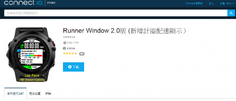 Data Field(資料欄位/感測資料應用):Runner Window 2.0 版(新增計圈配速顯示)