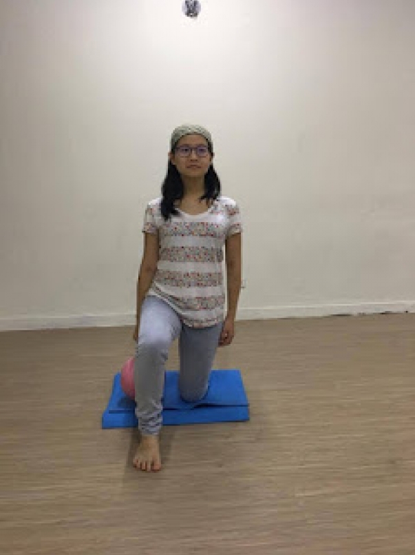 - 左腳單腳站:維持兩邊骨盆穩定下,右手持重量