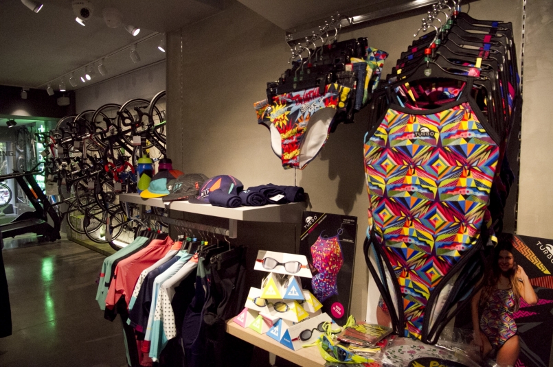 而在游泳人身部品方面,由美國飛魚自創的游泳品牌 MP 也可以在這裡找到,泳鏡、泳帽、泳衣,還有不少鐵人依賴的防寒衣,鐵人兵工廠也一應俱全。
