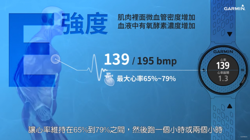 E 強度,主要訓練目的在於提升肌肉端的有氧能力(圖片來源:Garmin Taiwan)