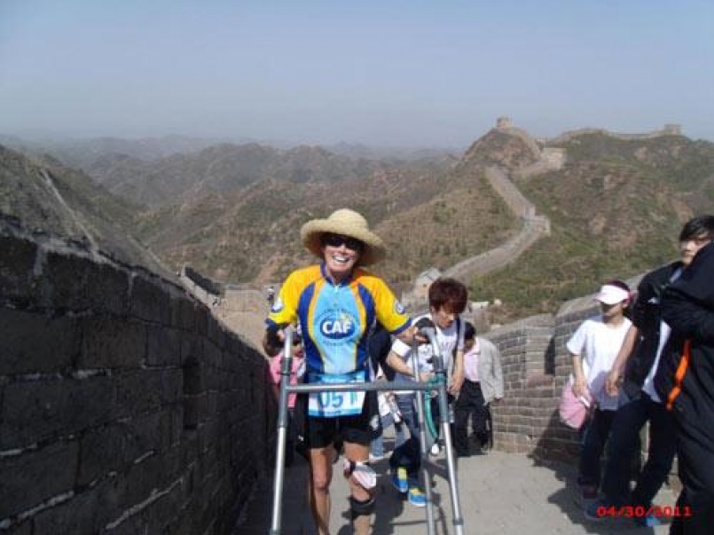 這場意外並沒有打倒 Beth,反而更激起她的意志力。受傷後完成的比賽甚至比受傷前還多,尤其在 2011 年她完成中國長城馬拉松之後,她決定挑戰 Seven Marathons on Seven Continents :世界七大洲跑完七場馬拉松。等一下,長城馬拉松?是那個有超過五千個階梯要爬的長城馬拉松?沒錯,Beth 靠助行器一步一步地完成這場一般跑者都會腳軟的長城馬拉松,想想真是不可思議。
