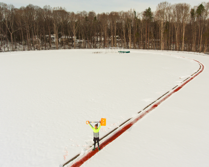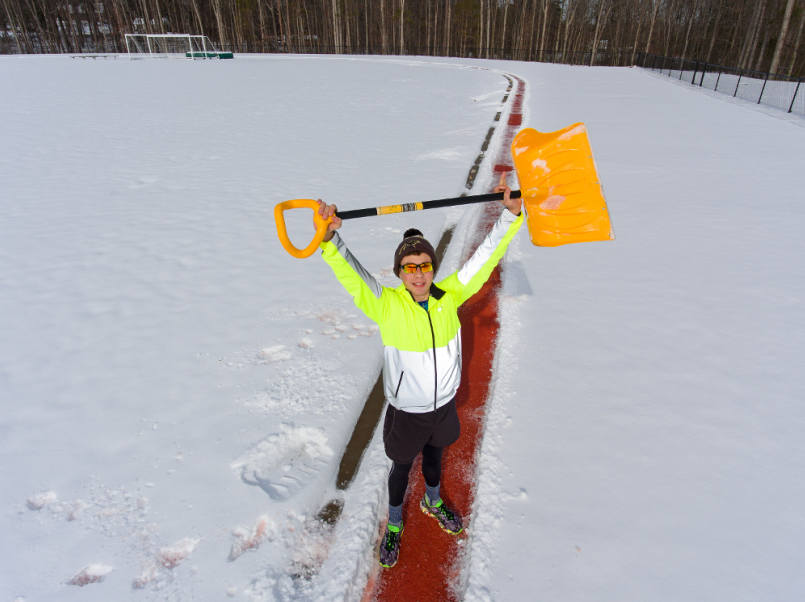 住在北卡羅來納的跑者 Quinn Schneider,最近就用行動告訴大家,只要你想跑,沒什麼不可能的。即使現在在北卡羅來納是大雪紛飛的寒冬,平常練跑的操場被埋在深達 20 公分的雪下,Quinn 毫不遲疑拿出剷子,花了一個多小時的時間,剷出一條 400 公尺跑道!