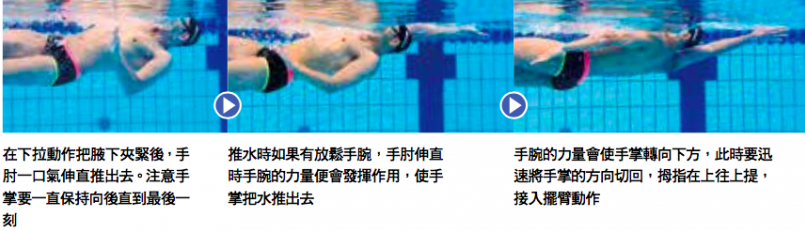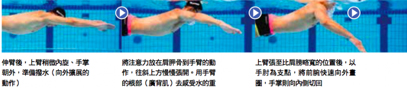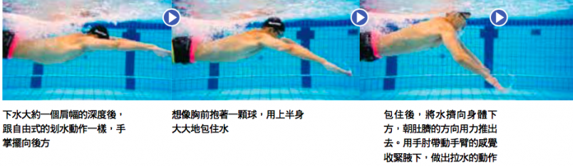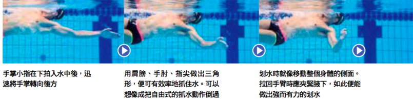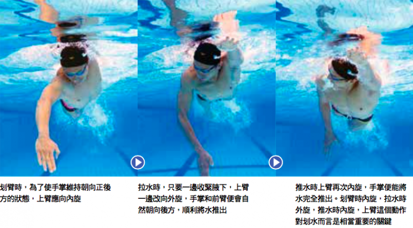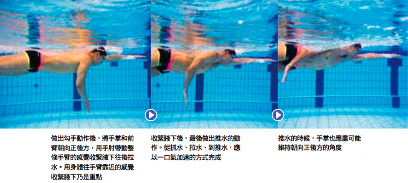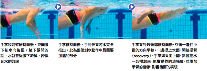 有效划水的方式:手掌朝向後方,做出有效率的抓水動作