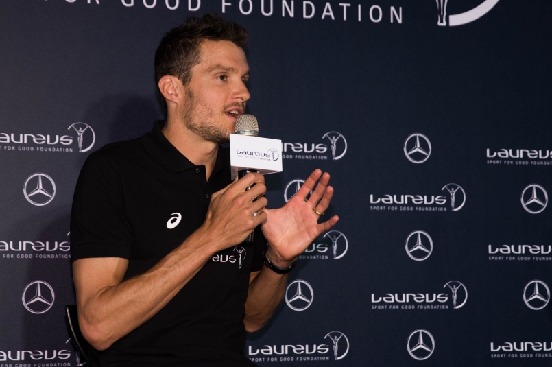 世界冠軍 Jan Frodeno,作為勞倫斯基金會大使,今日在台出席記者會(圖片來源:運動筆記)