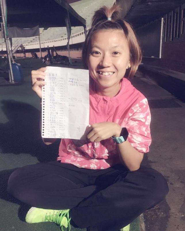 最近嫁為人妻的 Pinky~之前她跟小編說,她今天晚上的課表是五分速跑 15K,真是嚇死我了......(圖片來源:Garmin)