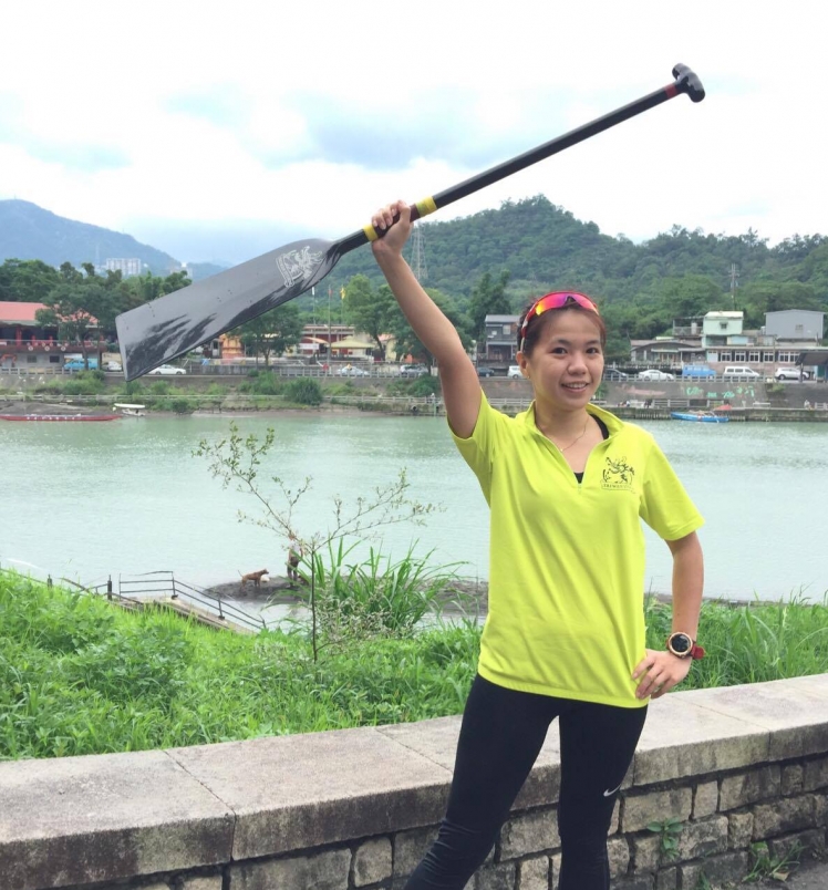 臺灣風暴龍舟隊正妹扛壩子 Mia 小姐,你看,他的玫瑰金有沒有很閃亮阿(圖片來源:Mia)