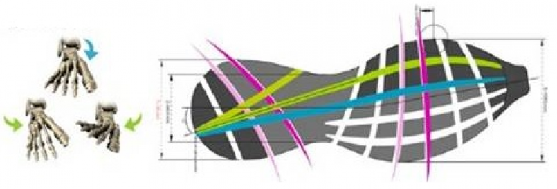傳統大底多以縱向溝槽為主,要針對腳掌的上下擺動為設計的需求,以因應腳掌推蹬時的力量及反饋,然而這樣的設計,忽略了足部除了推蹬之外,可能所做出其他角度的動作,特別是針對不同地形的練習,無論是草地或是泥土路,地面的不平都需要足部做出更靈敏的反應。