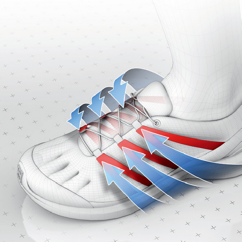 具品牌特色的鋸齒形鞋身承托帶,能有效將腳掌收緊,減少在劇烈跑動時的扭動,從而減低扭傷機會,使每一步更有力。而 Sensifit™ 之鋸齒形承托帶已成為 Salomon 鞋款的獨特標記。