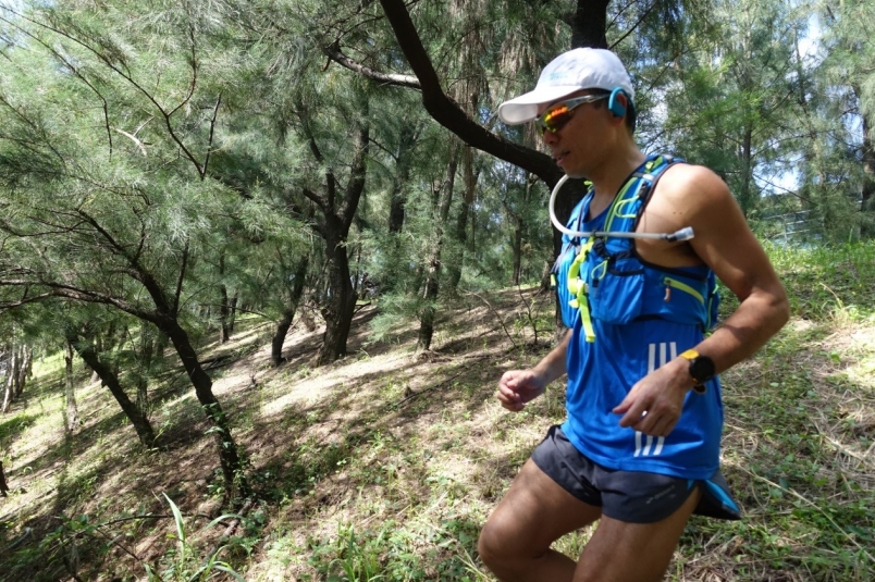 山林野徑奔跑,無線耳機讓聽音樂無所牽絆,不論上坡或下坡,身手更靈活。(照片來源:吳俊毅)