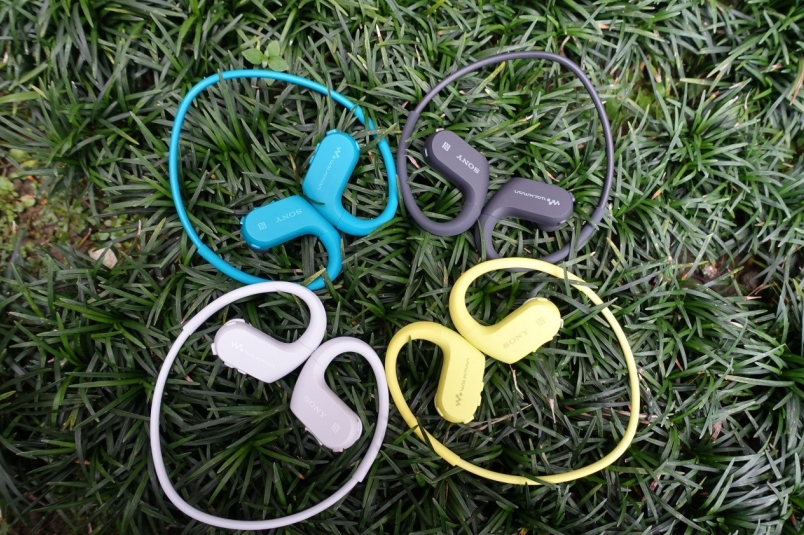 Sony NW-WS623運動藍牙隨身聽推出霧黑、灰白、海藍和野檸綠四款色系,讓夏日的音樂運動更加繽紛。(照片來源:吳俊毅)