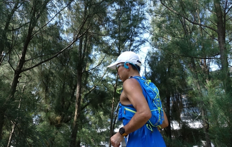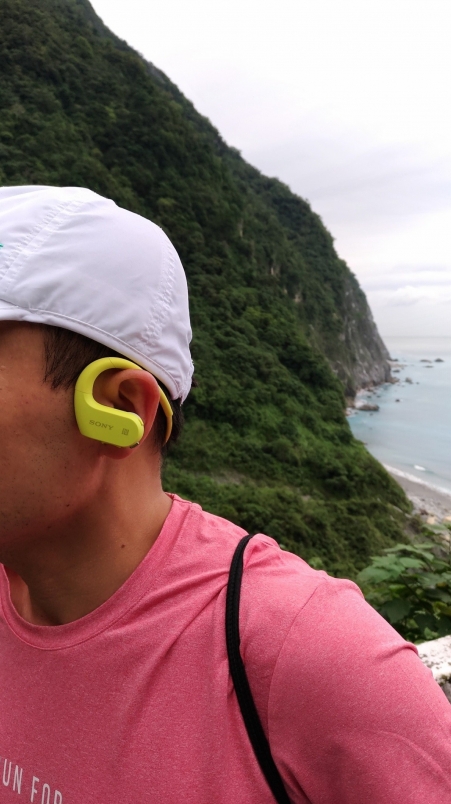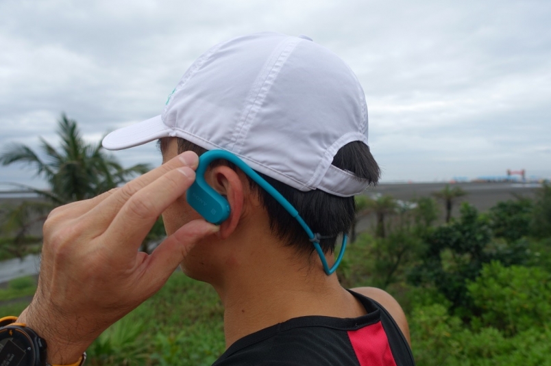 戴上 Sony NW-WS623運動藍牙隨身聽,夏日運動無羈伴。(照片來源:吳俊毅)
