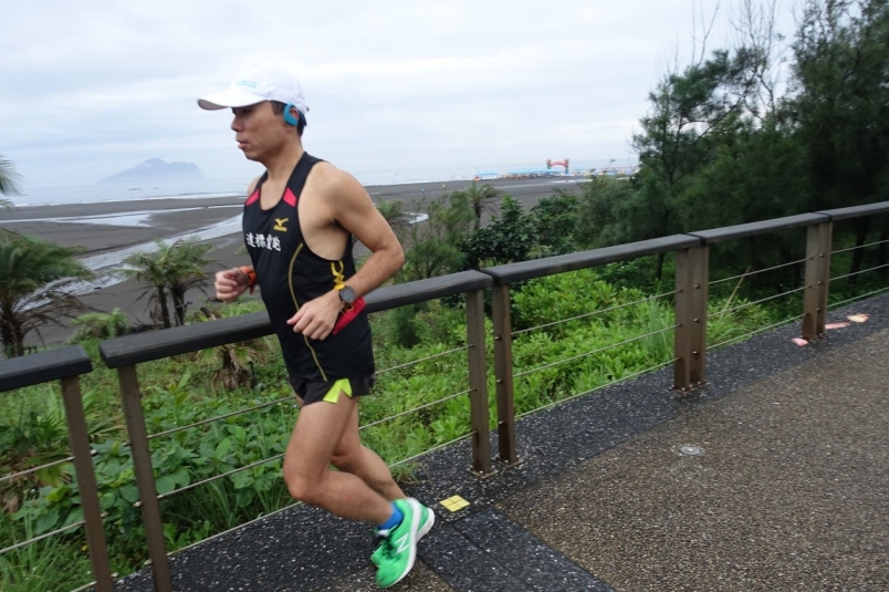 在海濱慢跑,透過Sony Walkman NW-WS623同時聆聽音樂與浪濤。(照片來源:吳俊毅)
