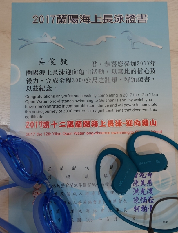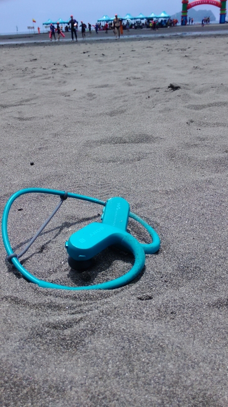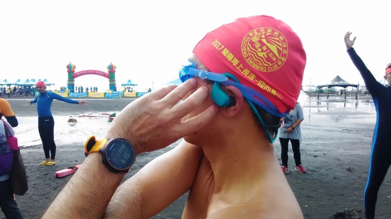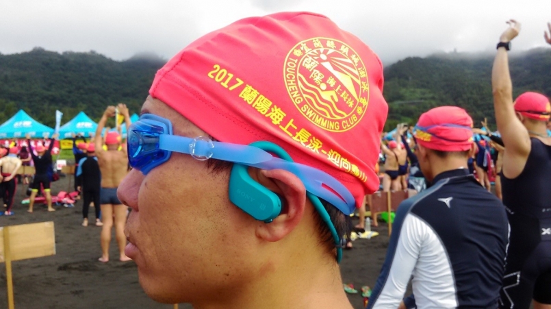 戴上Sony Walkman NW-WS623參加2017蘭陽海上長泳,測試其防海水、抗海砂的優異性能。