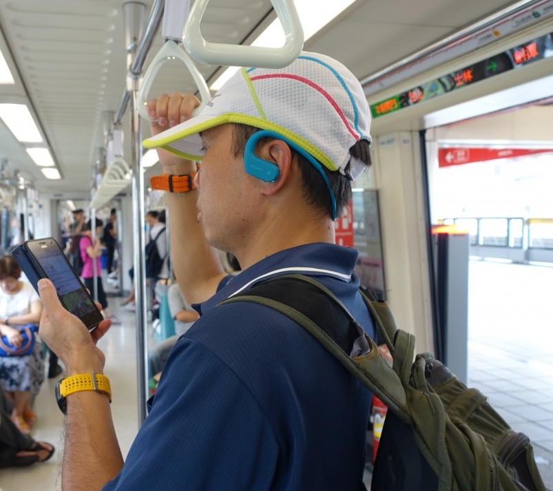 過往總是帶著 MP3 隨身聽或手機,搭配有線耳機,一路牽牽絆絆,礙手礙腳。(照片來源:吳俊毅)