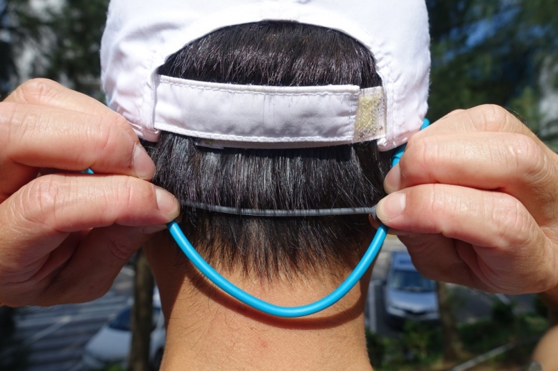 附有頭帶長度調節鬆緊帶,調整最佳鬆緊位置,確保運動中耳機的穩固。(照片來源:吳俊毅)