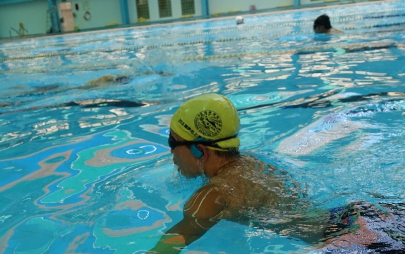 在室內游泳池 Sony Walkman NW-WS623 的音效呈現更顯優異。(照片來源:吳俊毅)