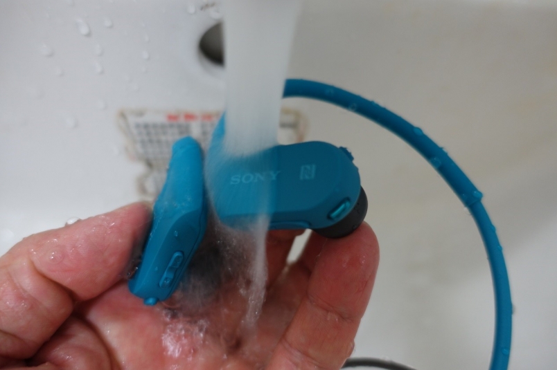 上岸後,耳機當然沾惹了許多海水與海砂,返家後依照說明書指示,將機身、耳塞直接在水龍頭下清洗,並且在清水中搖晃後浸泡,清除機身與耳塞中的鹽分與沙子,Sony Walkman NW-WS623 固然不受環境場地的限制,具有全天候的多元環境適應能力,但是運動後的清洗保養仍然是不可或缺的。