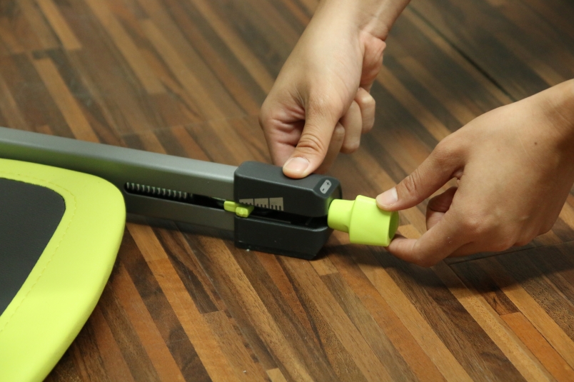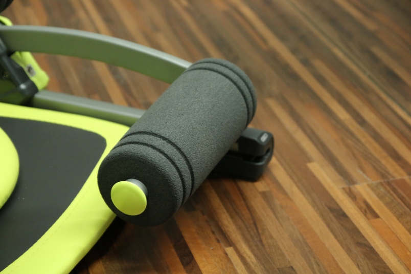 非常容易上手,只要將機器打開來輕輕放在地板上,無須組裝。將泡棉支架抬到最上方,再把旋轉的三角鈕就定位後調整阻力,立馬來強化各部位的肌肉!
