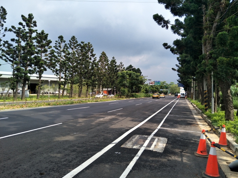 莫約 1 公里以內,右邊的人行道有點狹窄,走到大馬路上也還好,因為也沒有什麼車...... 但記得還是要靠邊啊!