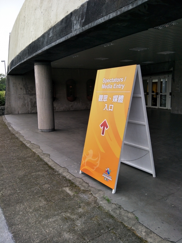 你以為這樣就結束了嗎?NO~世界大學運動會進門可是需要過安檢的呢!沒錯,就是機場那種要把身上金屬物拿出來,過個 X 光、再過個逼逼門的那種。可以帶水,只是警察北北可能會請你拿出來喝個兩口看看,場內也有飲水機可以使用。