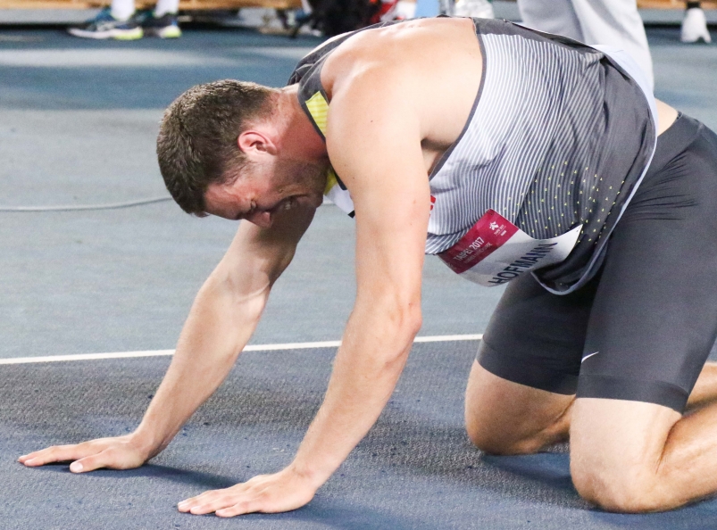 德國Andreas_Hofmann最後一擲成績以些微差距略遜於鄭兆村拿下銀牌(圖片來源:2017臺北世大運組委會)
