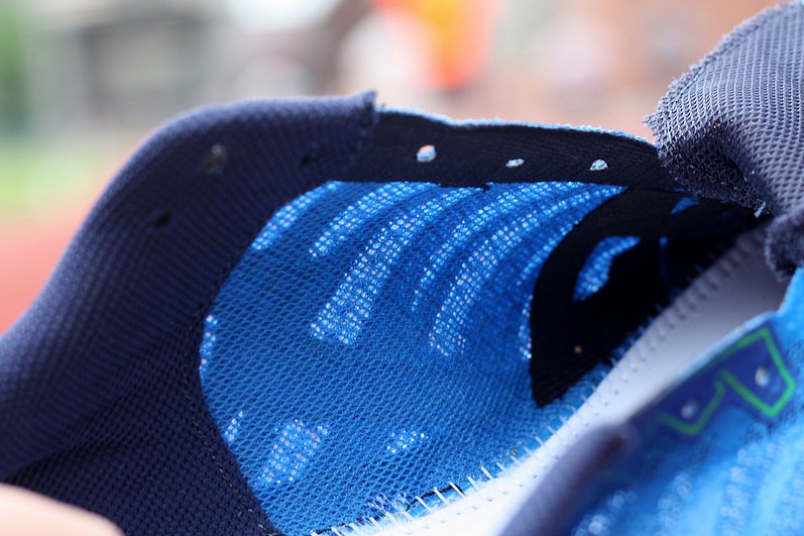 由跑鞋內側可以看出鞋身以透氣而輕薄的網布包覆,兼具穩固支撐與透氣的效果(圖片來源:賴信翰)