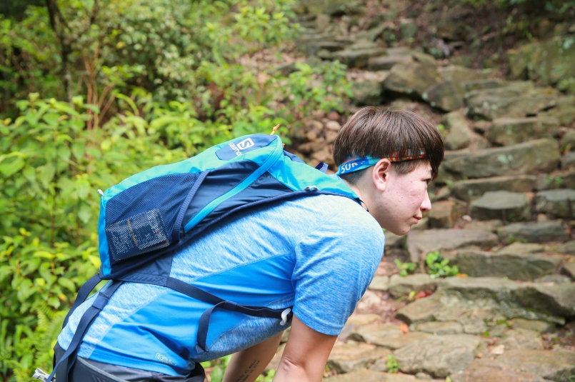 這是 Chris 的首場越野跑,因為里程較短,使用比較輕便的腰包,再搭配一支軟水壺即可。腰包的好處是配戴起來最不會對跑姿造成影響,也很適合在平日練習裡使用,至於腰包裡剩餘的空間,則可以放置手機、能量包等簡單的補給品。