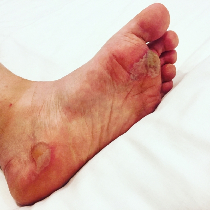 Chris 事後也覺得自己很不可思議,居然可以挺著這樣的水泡完賽(圖片來源:Chris)
