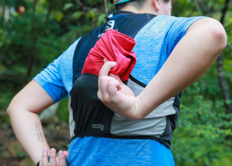 找到適合自己的裝備,在訓練過程中先行熟悉,讓比賽過程中使用時更加流暢,SKIN PRO 10 SET 的背帶有多組扣帶,讓人找到最舒適的固定位置(圖片來源:運動筆記 / 詹偉業)