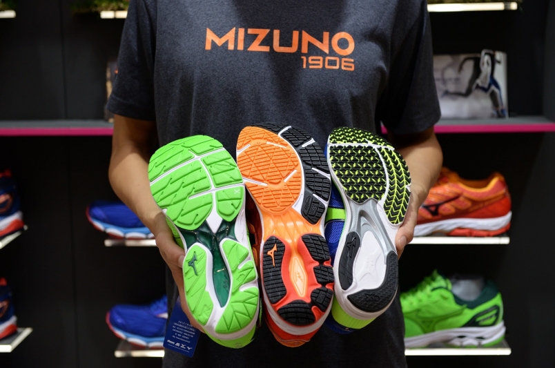 育宏教練:我以美津濃系列鞋款為例,競速鞋款——Emperor(皇速)、避震跑鞋——Rider、以及調性居中的訓練鞋——Wave shadow 這三款一比,就能很明顯地看出不同跑鞋的取向與性能特點。