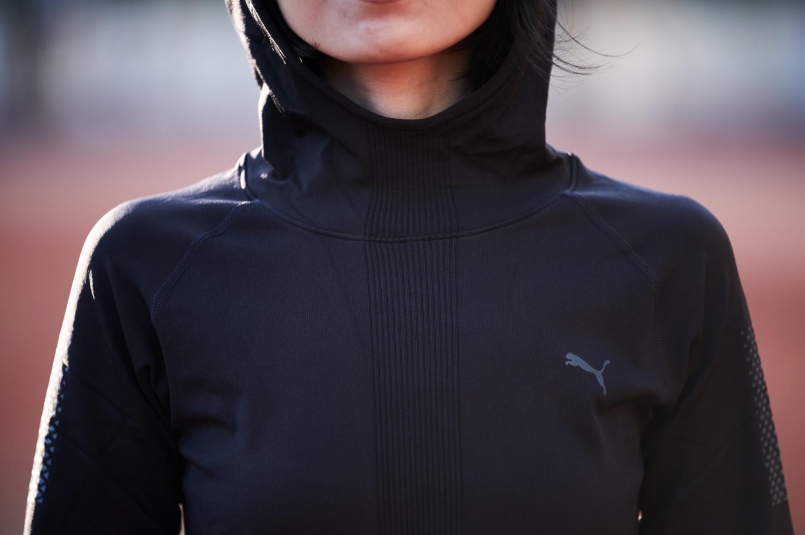 PUMA 本季慢跑系列 NightCat 連帽長袖上衣就很方便,而且也很適合晚上外出活動或運動時著用。上衣很輕薄,EvoKNIT 無縫針織彈性十足,也有修身設計,剪裁俐落,搭配 NightCat 反光材質,好看又具機能性。(圖片來源:運動筆記 / Mirada)