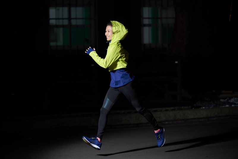 此外,低光照地方的安全性也非常重要,NightCat 系列的跑衫、外套及跑鞋在日光下,與一般衣服無異,但在漆黑環境中受到燈光照射時,裝備就會產生反光效果,宛如衣服自身在發光一樣。跑者夜跑時,路線也非常多變化,山路、田邊也不顯見,有些道路街燈很少,若衣褲顏色過於暗沉,危險性相對也提高,所以反光設計,能讓其他人更易察覺到,減少意外機會。