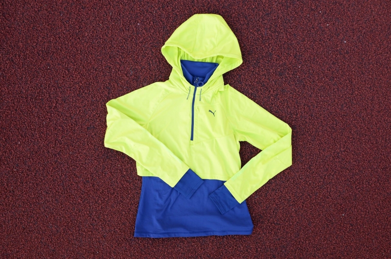 PUMA 本季的 NightCat 兩件式長厚連帽 T 恤,就可以充分保護頸部,再加上姆指孔洞加長袖套、胸前拉鍊口袋跟反光材質拉鍊等細節,還有二合一的造型,這一件運動外衣真的機能性很強,穿起來也很有型!