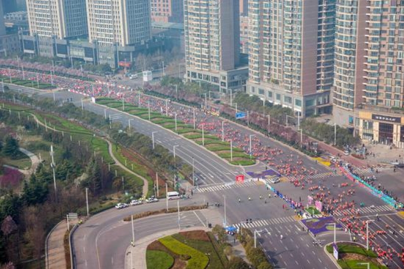 今年鄭開馬拉松的壯觀空照圖,跑在這樣的賽道上是否也讓你熱血沸騰(圖片來源:新浪河南/靳晰)