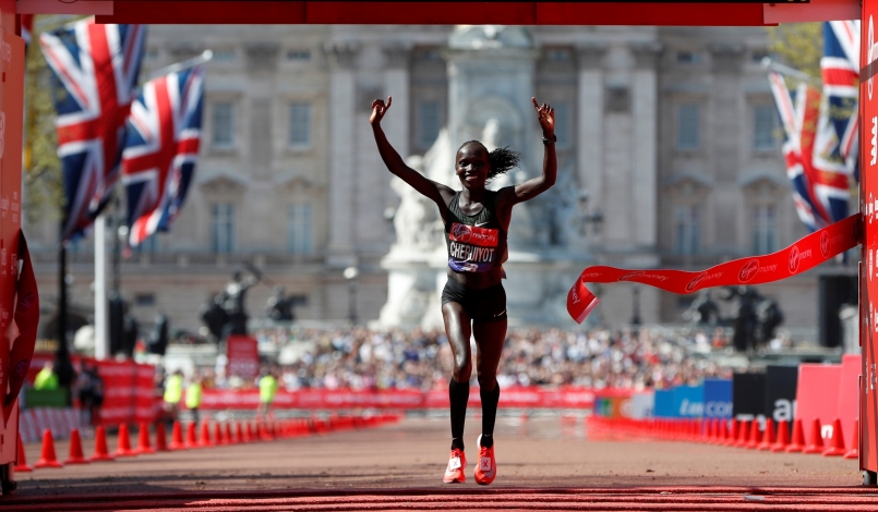 螳螂捕蟬、黃雀在後,在所有鎂光燈聚集在 Dibaba 和 Keitany 的狀況下,前年里約奧運成為肯亞史上首位在奧運五千公尺女子組封王的 Vivian Cheuiyot 選擇保持自己的節奏,穩紮穩打,結果在溼熱的天氣下跑出了相當亮眼的成績,2:18:31,史上第四快的紀錄,Cheuiyot 在比賽過程中一直不在鏡頭前,直到 Keitany 於 35 公里掉速時,才發現後方一個黑色身影已如此接近,Cheuiyot 穩健的配速一舉超越失速的 Keitany,最後一舉將個人最佳紀錄向前推進五分鐘之多。