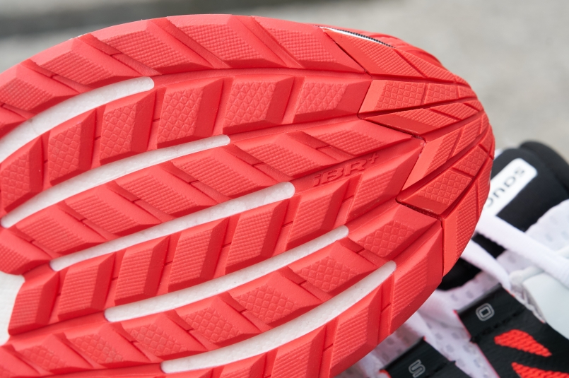 耐磨的大底一直是 TRIUMPH ISO 鞋款的一大特色。這次也延續前一代的設計使用了兩種橡膠材質,在容易耗損的鞋跟邊緣和前腳掌尖端採用的是較為耐磨的 XT-900 碳纖維橡膠,而其他位置則使用彈性較佳的 iBR + 橡膠,在更大的表面積上分散力量,同時提供最佳的抓地力及彈性。
