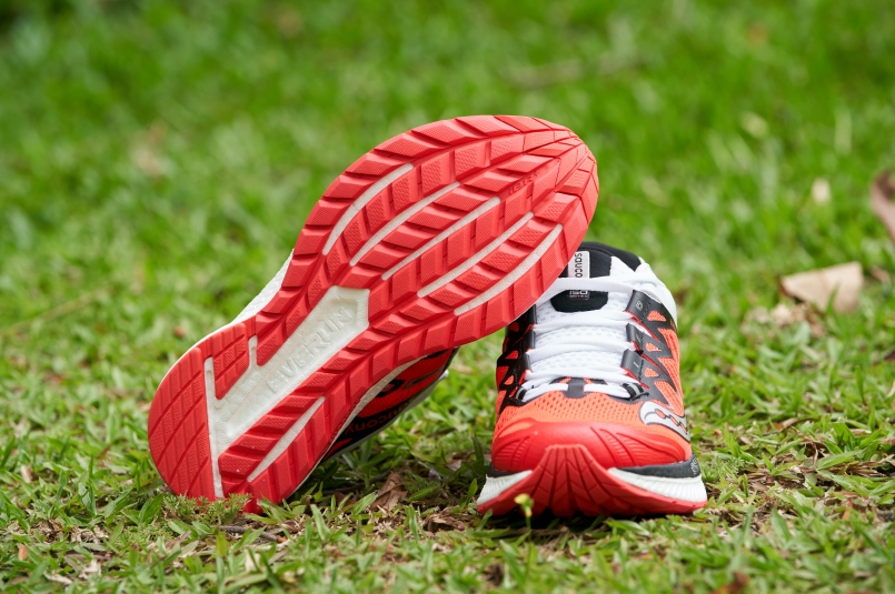 如同 adidas 的 BOOST ,Skechers 的 FLIGHT GEN™,EVERUN 是目前 Saucony 最頂級的中底技術。根據檢測,EVERUN 的彈性是一般 EVA 材質的 3 倍,著地時的動能回饋也從原本的 74% 提升到 83%,也就是說,配備 EVERUN 的跑鞋可以創造出更加緩衝省力的跑感。