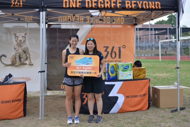 洪雅娟以 20 分 27 秒 09 成為本次測驗賽最速女跑者,與 361° 營業部副總經理李照圓合影(圖片來源:運動筆記)