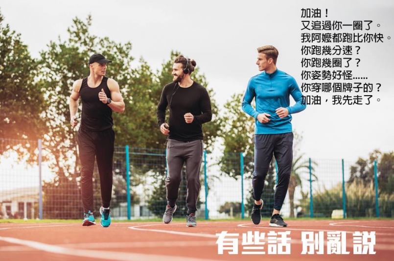 你永遠不知道對方跑了多久多長,千萬不要隨便挑釁跑者!同樣在跑道上做訓練,為正在訓練的彼此鼓勵加油就好了!